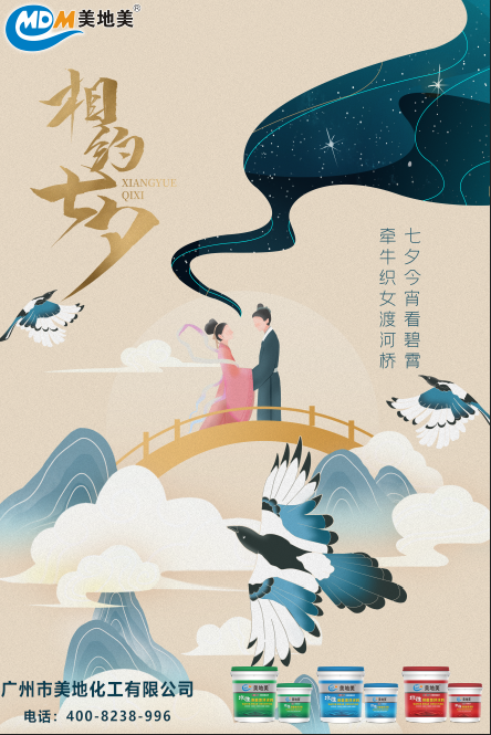 一年一度的七夕情人節又到了,相比有很多熱戀中的男女朋友應該早就盤算怎么度過這個浪漫的七夕節日了吧!七夕節源于牛郎織女凄美的愛情傳說,它向我們展示了對愛情的執著堅持,也吿訴我們一個真理,任何時候我們都不要放棄希望,放棄夢想。美地美地坪漆自成立以來走過十五個年頭的七夕,每年的浪漫七夕,美地化工總與你漆漆相惜,一路走來堅持為廣大消費者提供優質的環氧地坪漆。